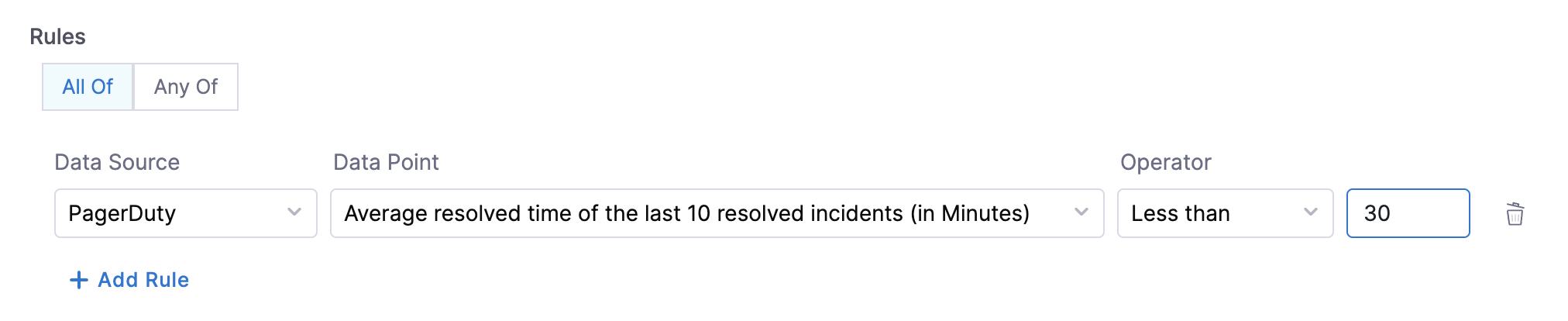 - Is on-call Set - This data point can be used for creating rules that will check if the on-call is set for a given service.