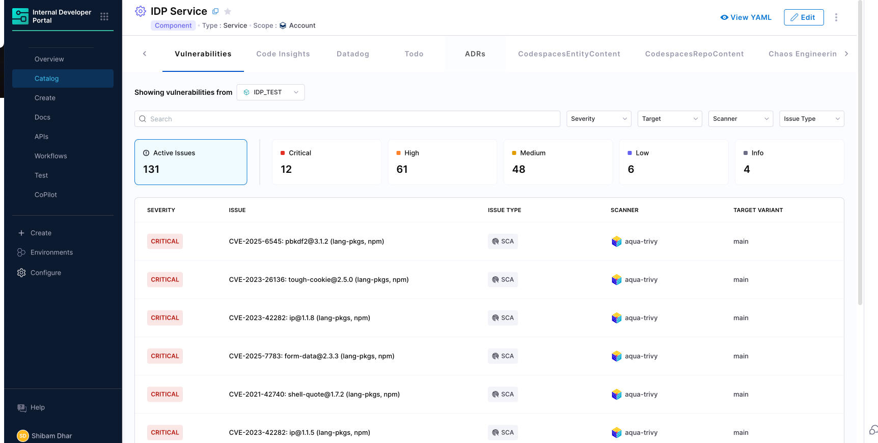 STO findings can now feed into IDP Scorecards, allowing automated tracking of security compliance across all services. Custom vulnerability checks, thresholds, and severity filters can be configured to reflect organization-wide security posture.